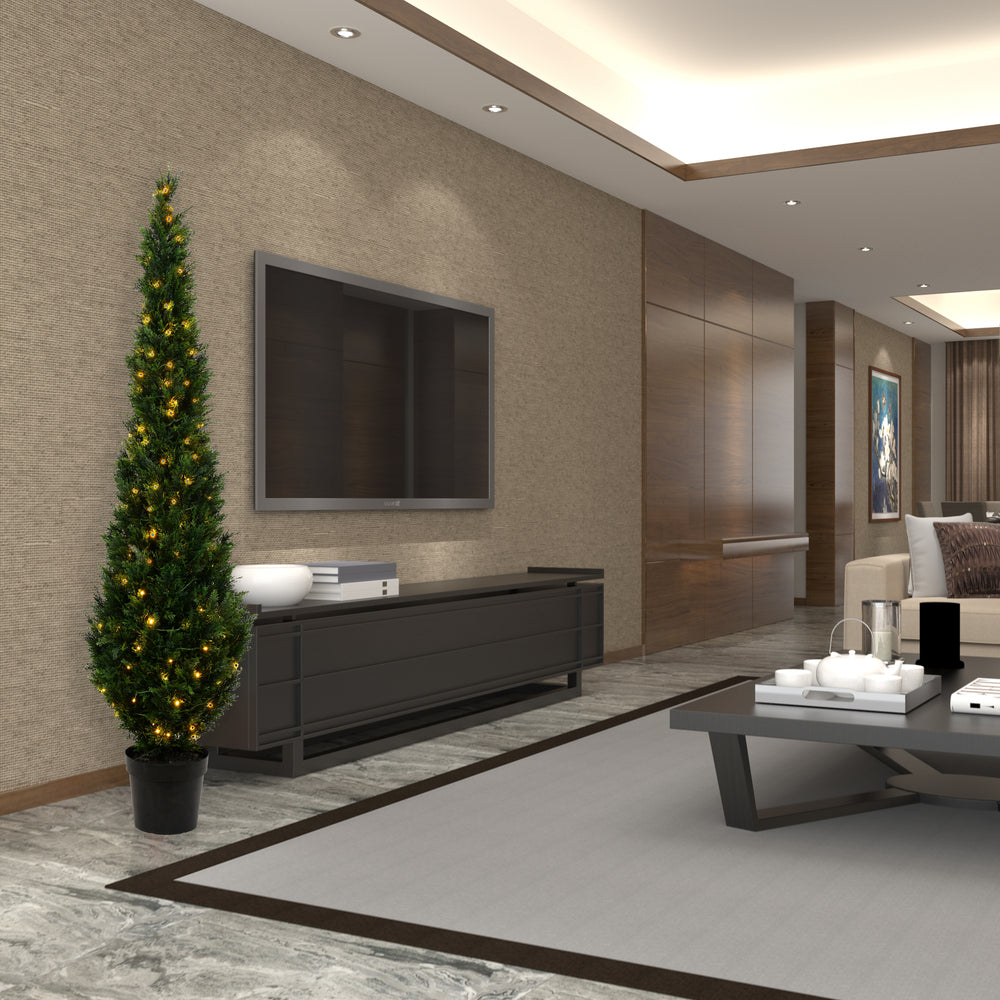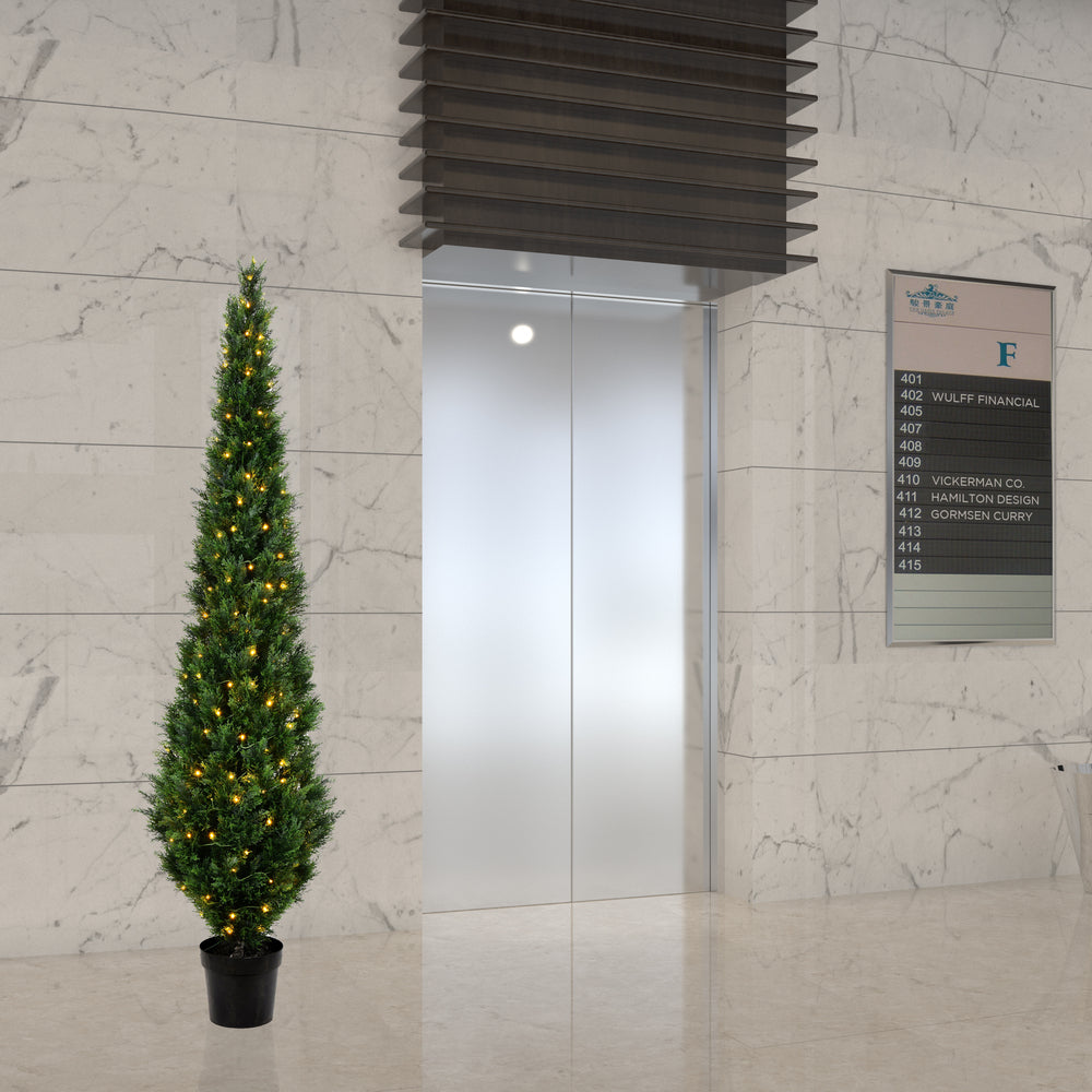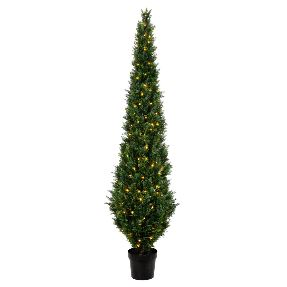Vickerman 7.5' Flocked Lime Pencil Fir Artificial Christmas Tree Lime Dura-lit LED Lights