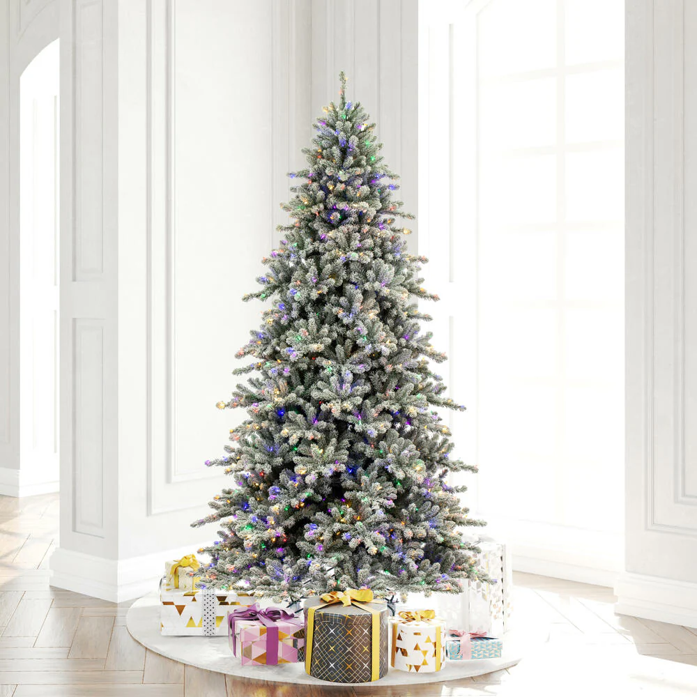 Vickerman 7.5' x 59" Flocked Bavarian Pine Artificial Pre-Lit Christmas Tree Multi-Colored Lights.