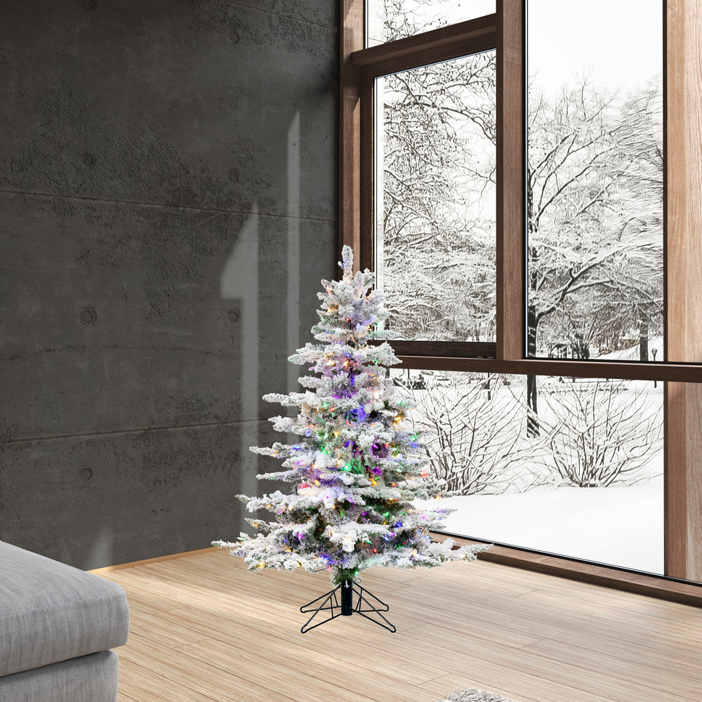 Vickerman 4.5' Flocked Utica Fir Artificial Christmas Tree Multi-Colored LED Lights