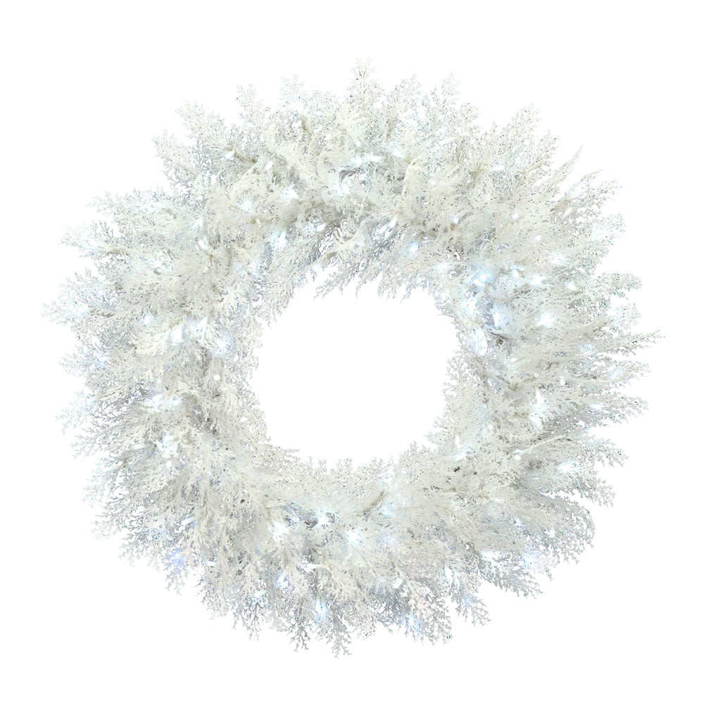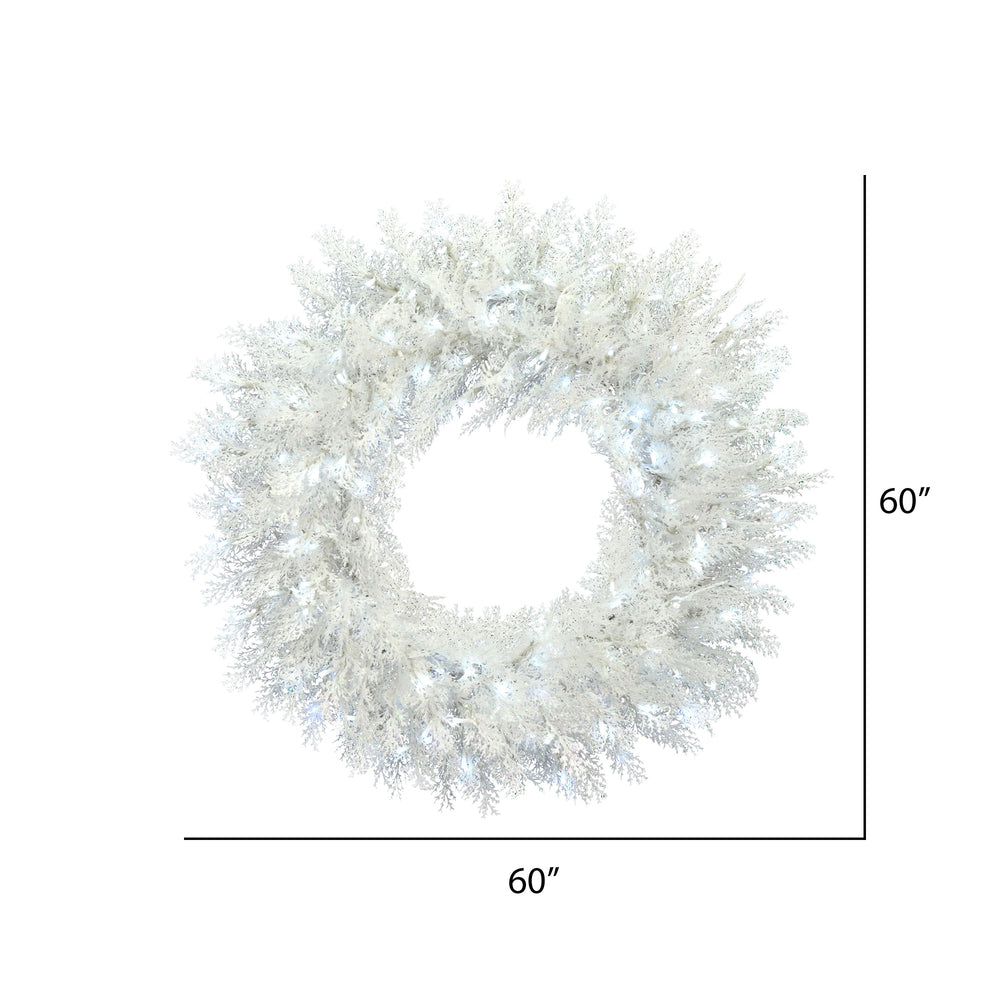 Vickerman 60" Flocked Cedar Pine Artificial Christmas Wreath Pure White Low Voltage LED Wide Angle Lights.