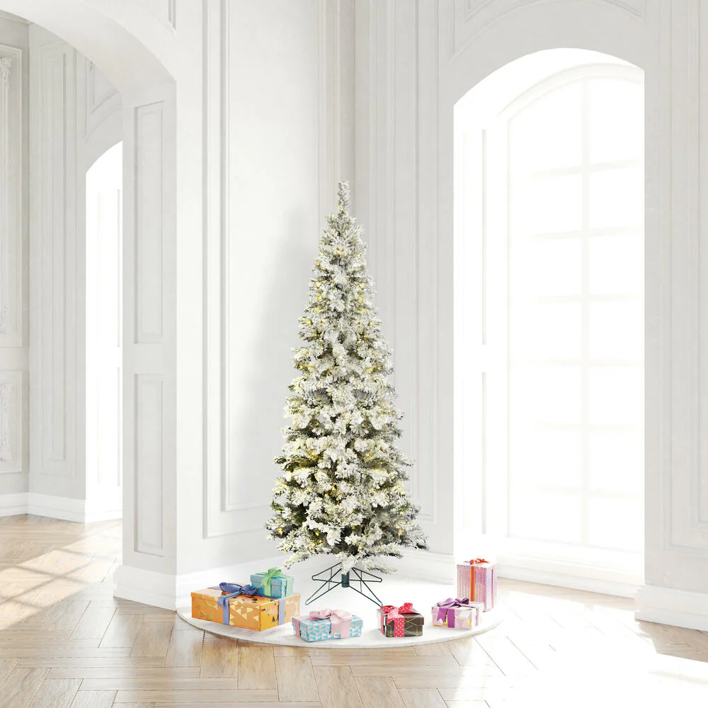 Vickerman 6.5' Flocked Pacific Pencil Artificial Christmas Tree with Pure White LED Lights