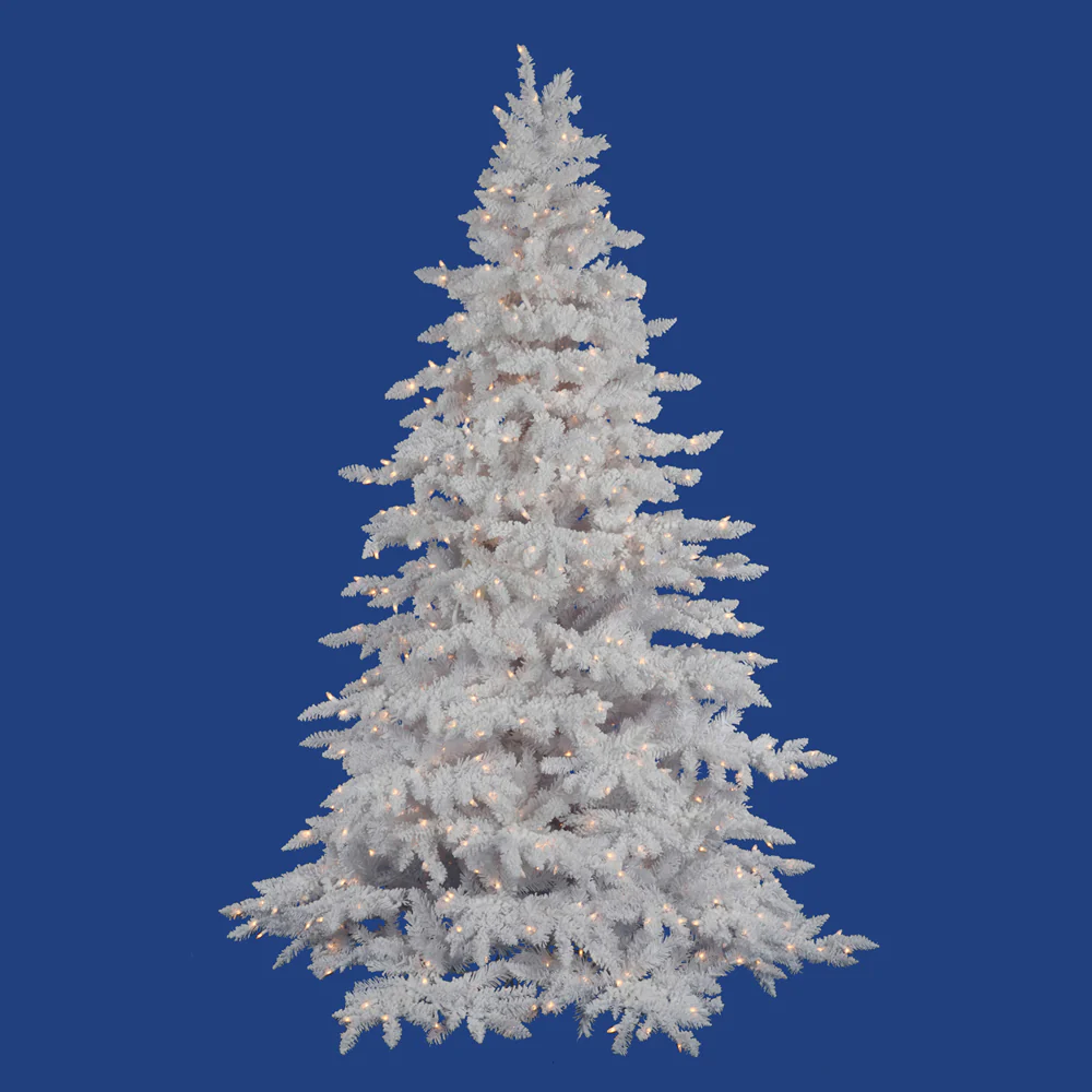 Vickerman 12' Flocked White Spruce Artificial Christmas Tree Clear Lights