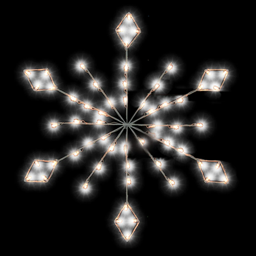 Vickerman 4' Diamond Snowflake Pole Decoration With 48 Pure White LED Lights.