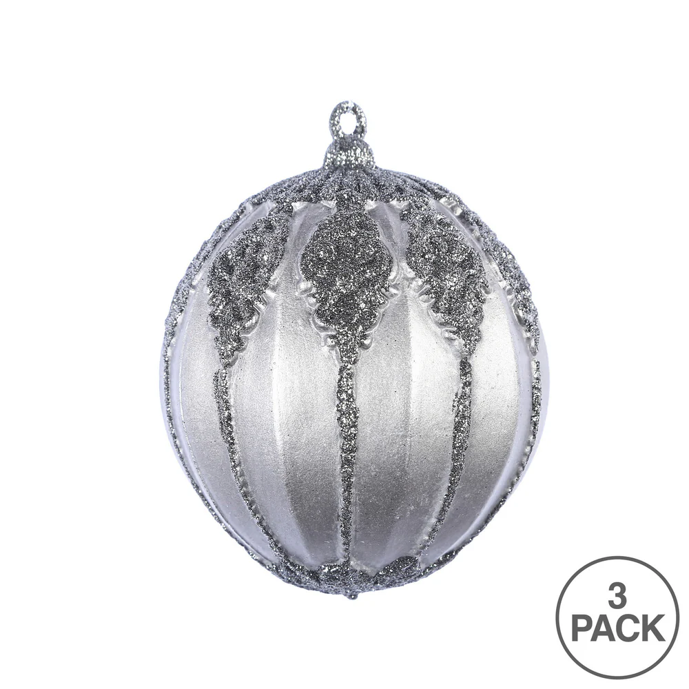 Vickerman 4.5" Gunmetal Antique Embossed Line Ball Ornament 3 per Bag