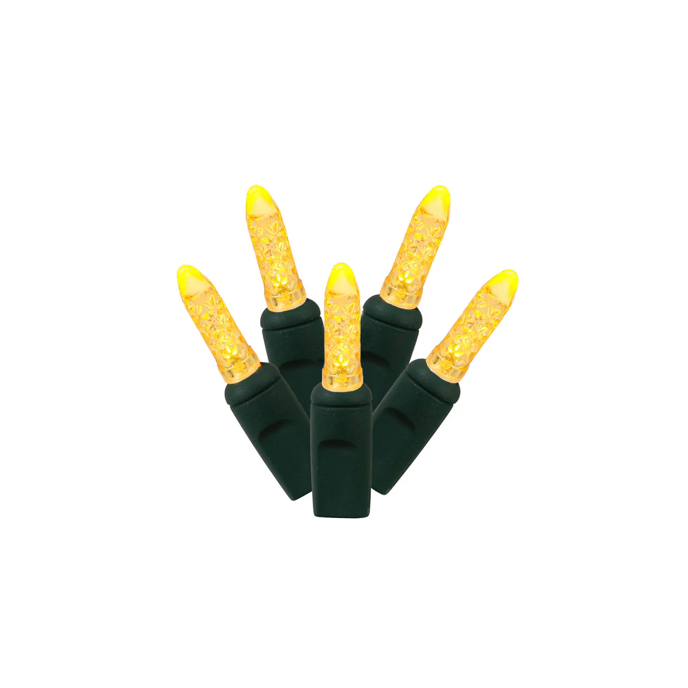 Vickerman 70 Yellow M5 Faceted LED Light on Green Wire 4" Spacing x 24' Long Christmas Light Strand