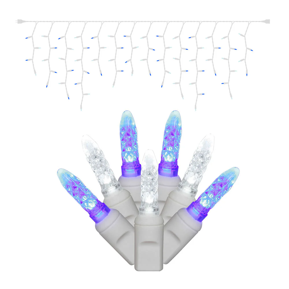 Vickerman 70 Blue-Pure White M5 LED Icicle Light on White Wire 9' Light Strand.