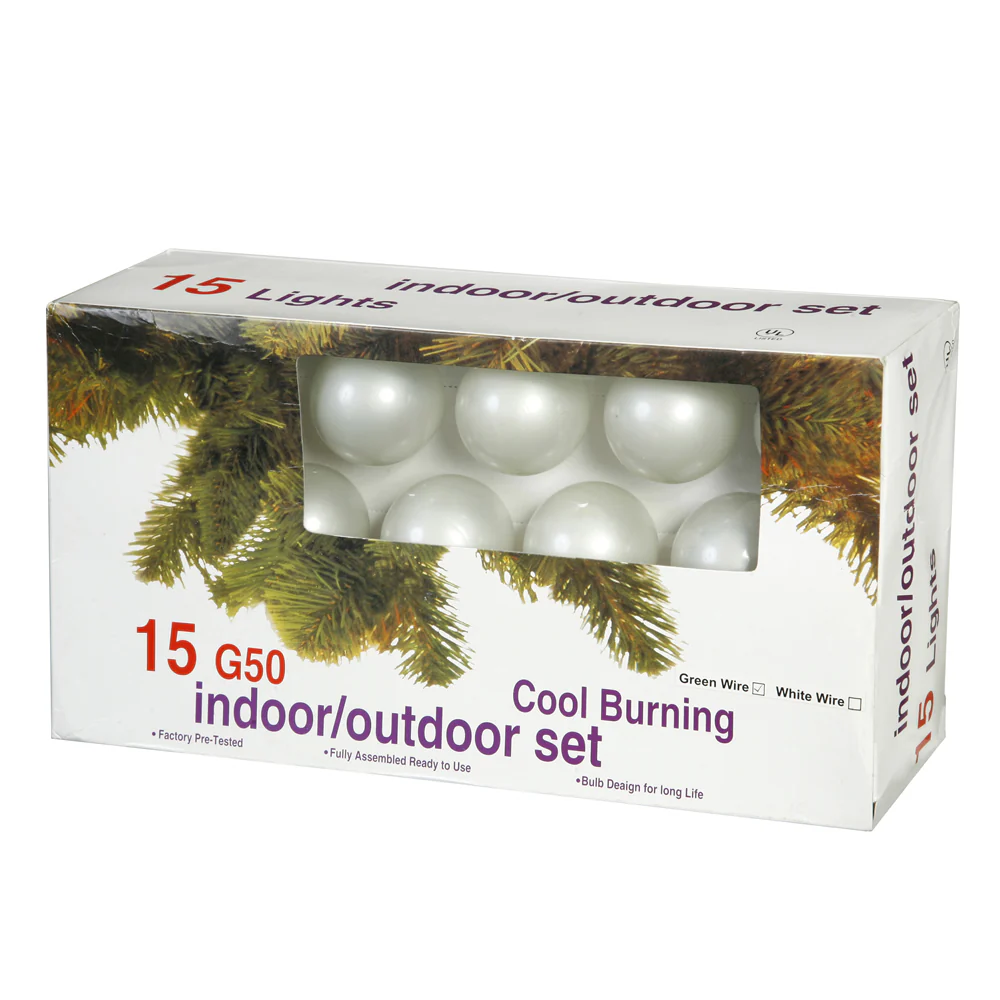 Vickerman 15 Pearl White G50 Light on Green Wire 10' Christmas Light Strand