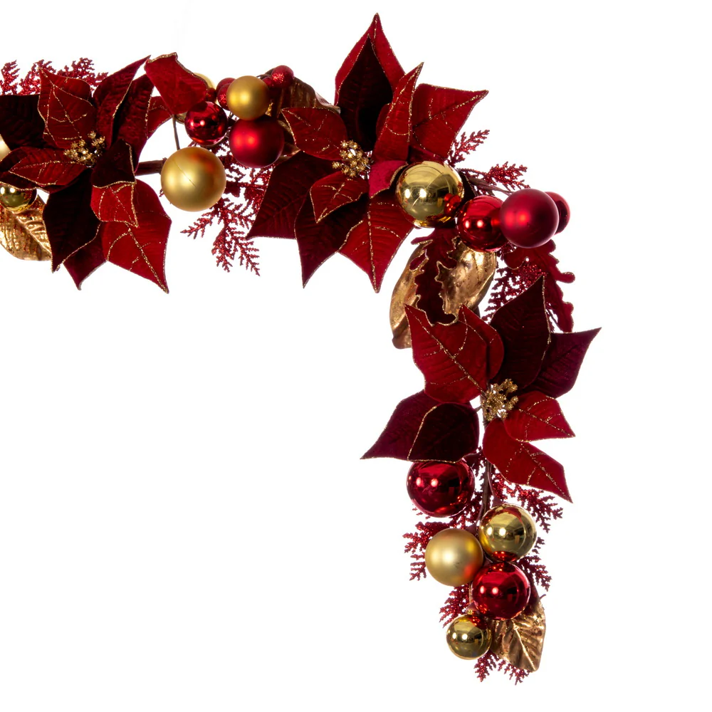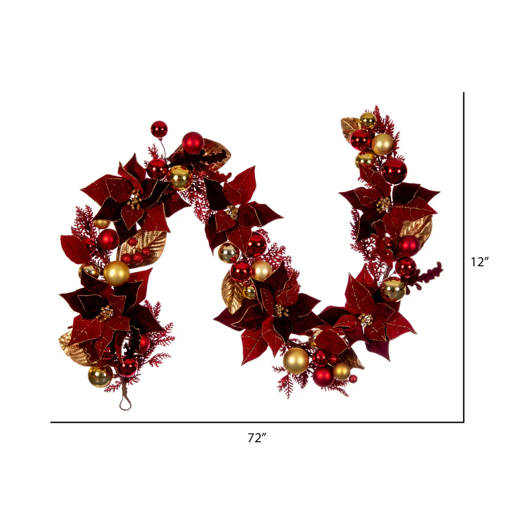 Vickerman 6' Artificial Red Poinsettia Deco Garland