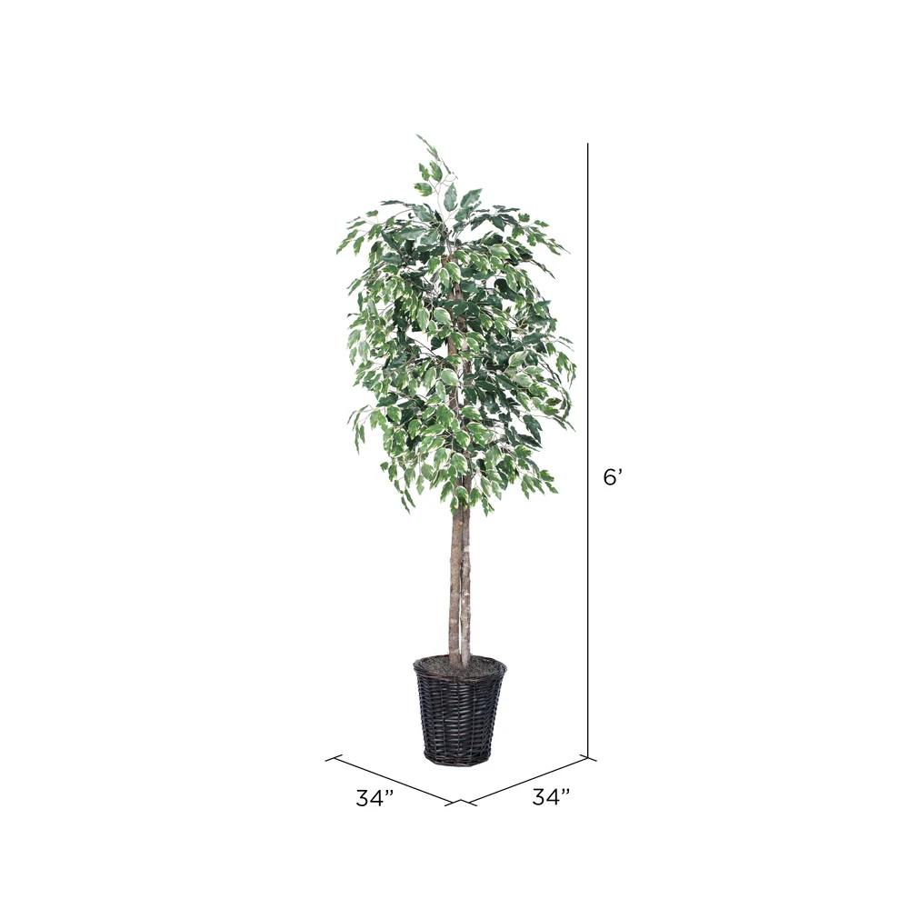 Vickerman 6' Artificial Variegated Ficus Rattan Basket