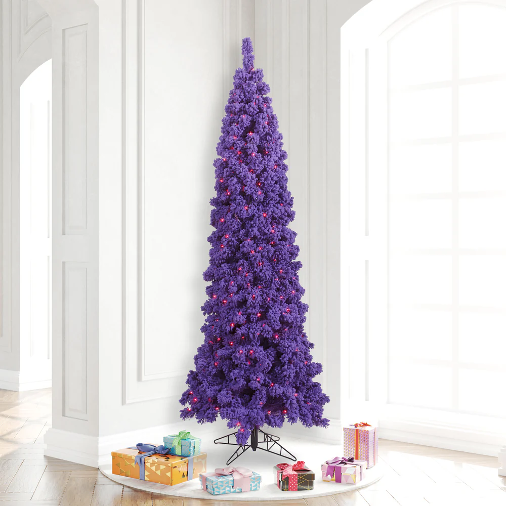 Vickerman 7.5' Flocked Purple Pencil Fir Artificial Christmas Tree Purple Dura-lit LED Lights