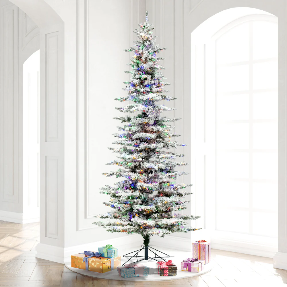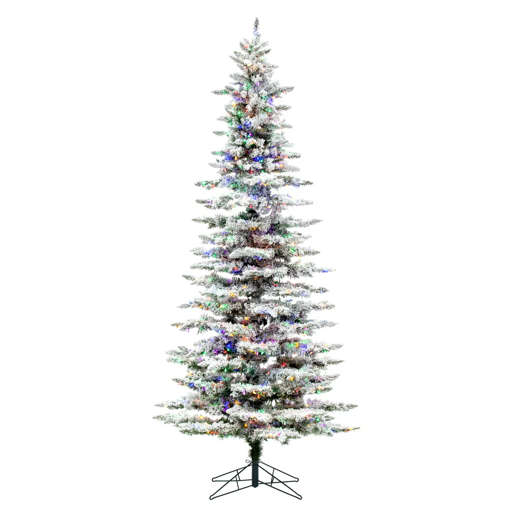 Vickerman 9' Flocked Utica Fir Slim Artificial Christmas Tree Multi-Colored LED Lights
