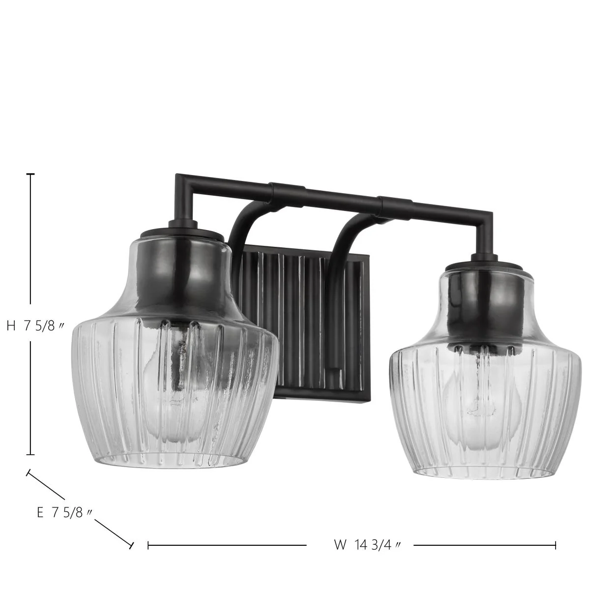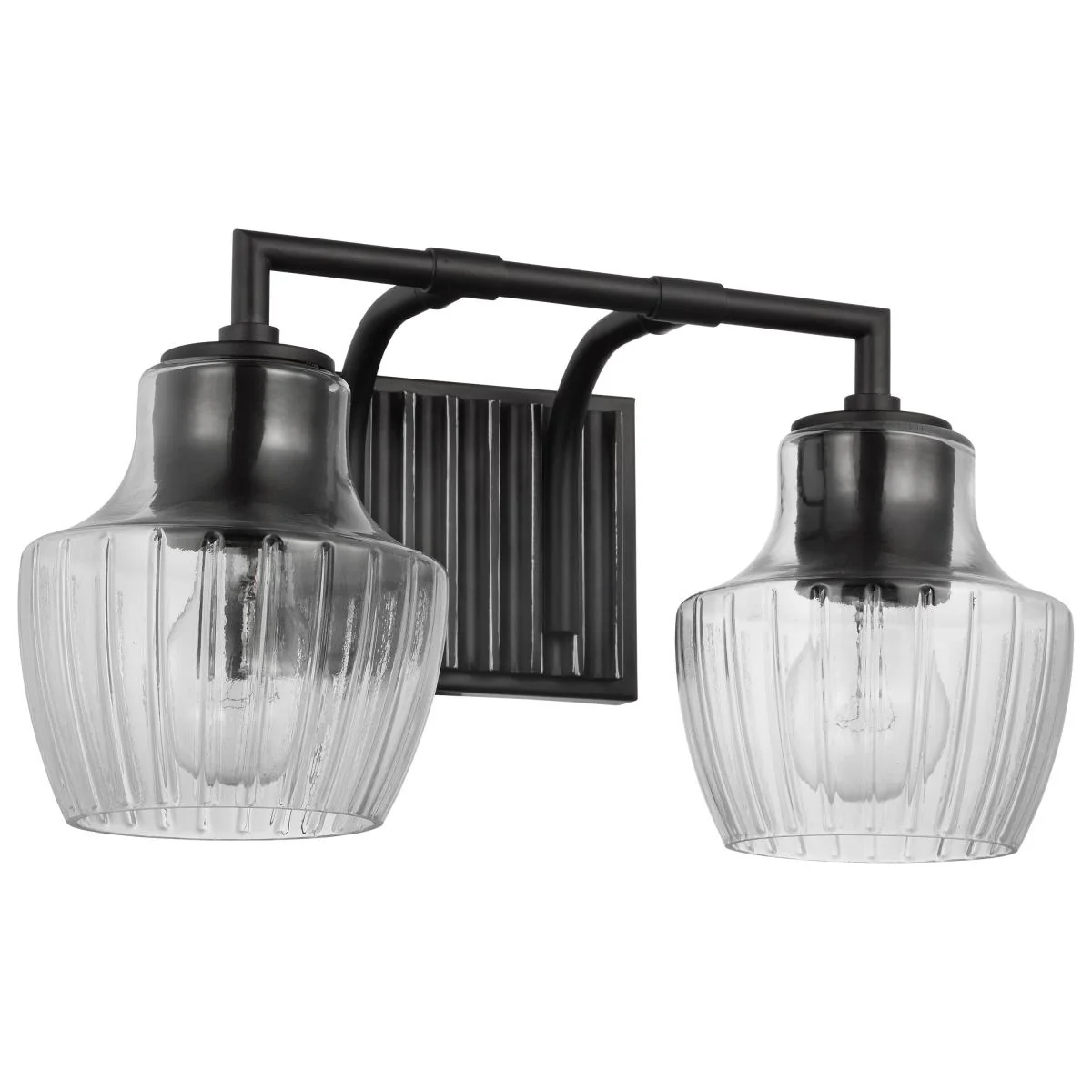 60-7702 DESTIN 2LT VANITY Destin; 2 Light Vanity; Medium Base; 60 Watt; Black And Silver Accent Finish; Clear Ribbed Glass