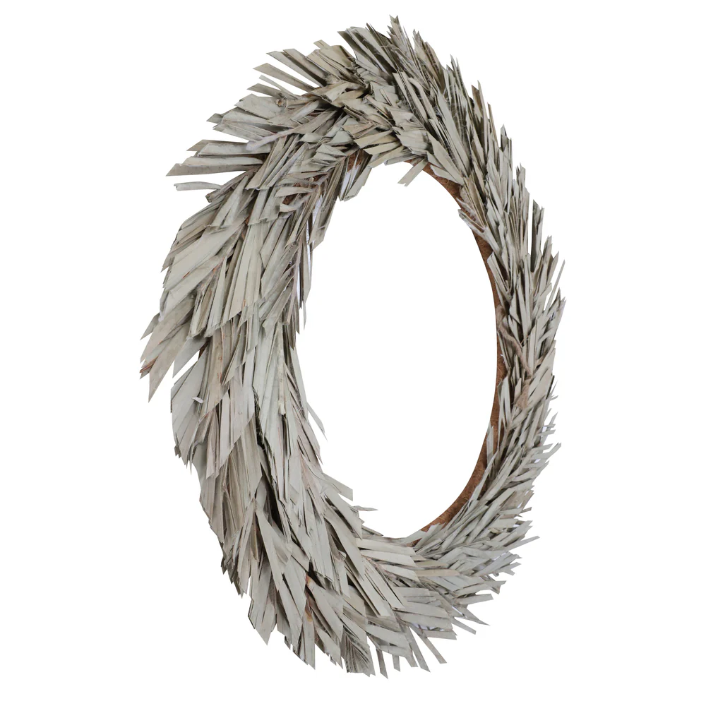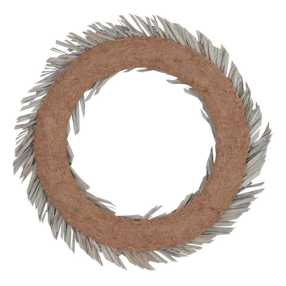 Vickerman Natural Botanicals 24" Natural Canna Leaf Wreath. This wreath measures 24 inches in diameter. It features natural canna leaves on a coco fiber base. This is a dried and preserved natural product.
