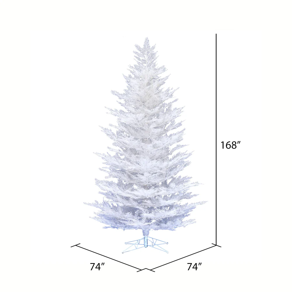 Vickerman 14' x 74" Flocked Cedar Pine Artificial Christmas Tree with 3361 PE Tips Hinged Branches and Folding Metal Stand