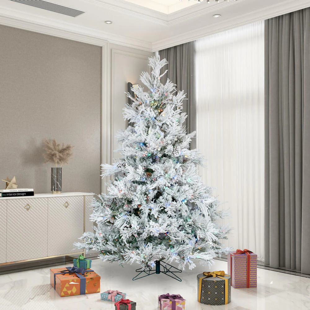 Vickerman 15' Flocked Alberta Artificial Christmas Tree Multi-colored LED Lights.