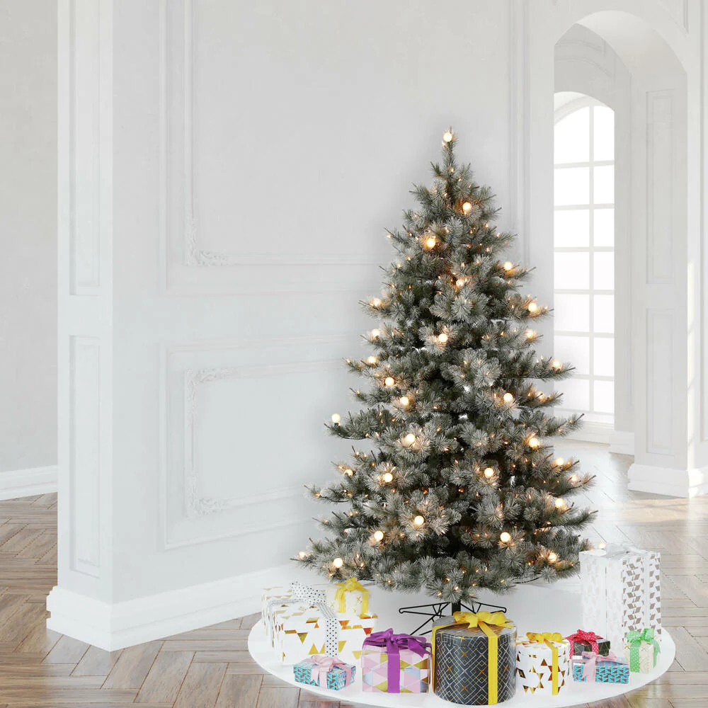 Vickerman 7.5' x 42" Frosted Glacier Pine Artificial Pre-Lit Christmas Tree with Lightly Frosted Tips