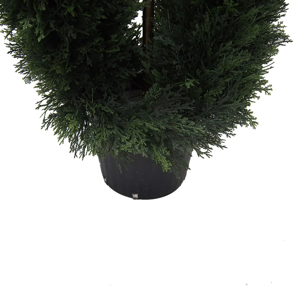 Vickerman 5' Artificial Green Cedar Double Spiral Topiary Black Plastic Pot.Widest part is 16"