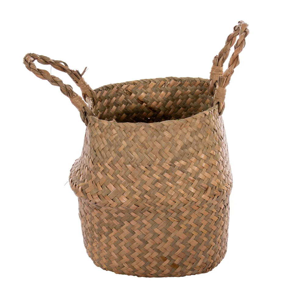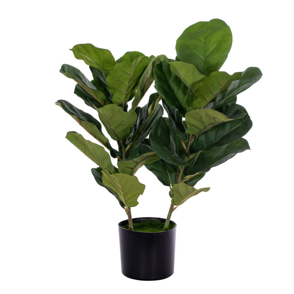 Vickerman 31" Two Stem Green Fiddle Leaf in Woven Basket. The pot measures 7" x 7" x 7.5".
