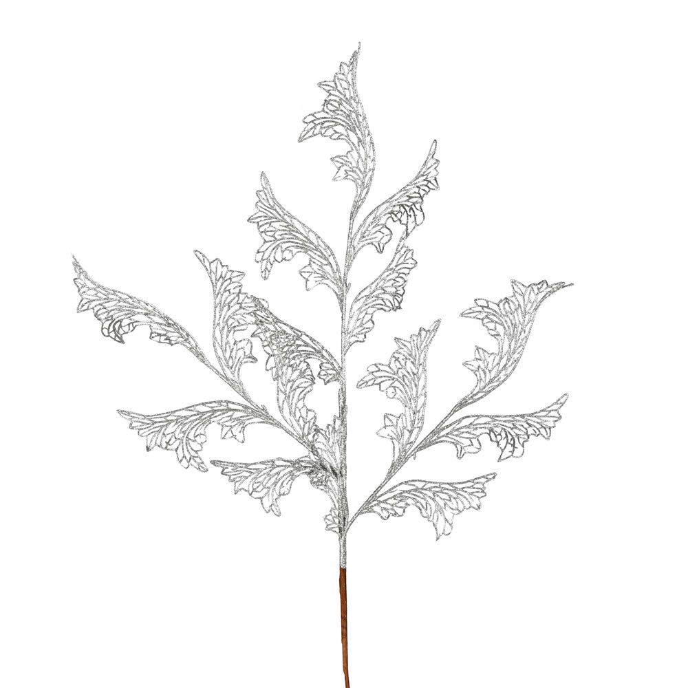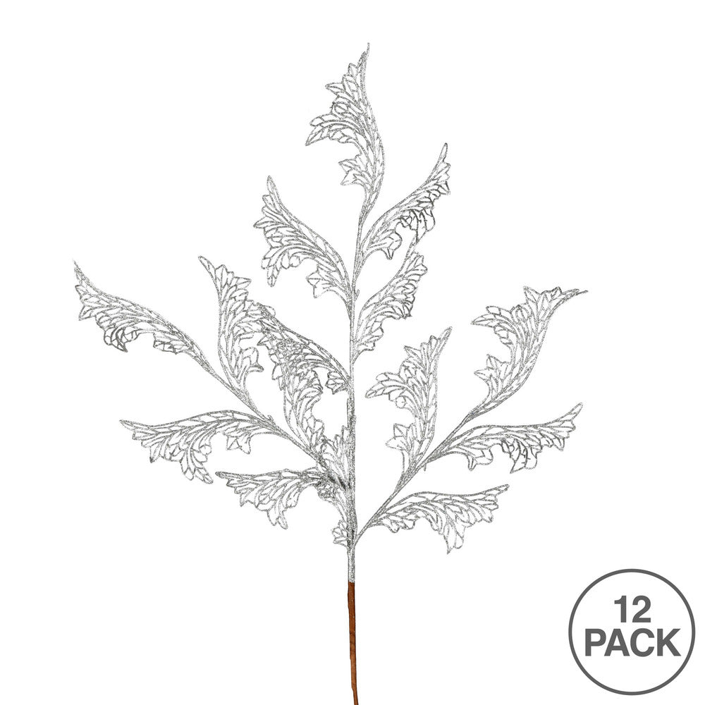 Vickerman 27" Silver Glitter Coral Bells Leaf Lace Artificial Christmas Spray. Includes 12 sprays per pack.