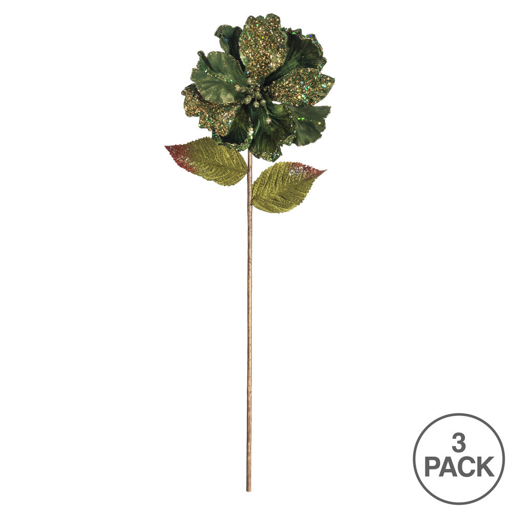 Vickerman 20" Green Mesh Pearl Amaryllis Artificial Christmas Stem Pack of 3