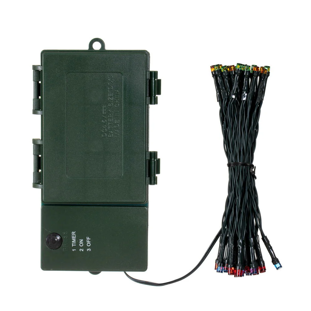 Vickerman 50 LED Multi-Colored Battery Operated Light Set, Green Wire with 5 Bulb Spacing.- 2 Pack