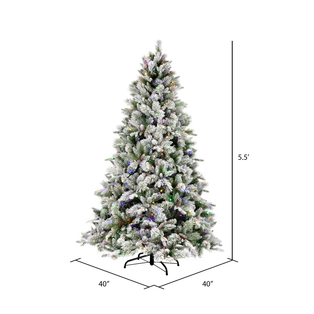 Vickerman 5.5' x 40" Flocked Ellis Pine Artificial Christmas Tree Multi-colored Dura-Lit® LED Lights