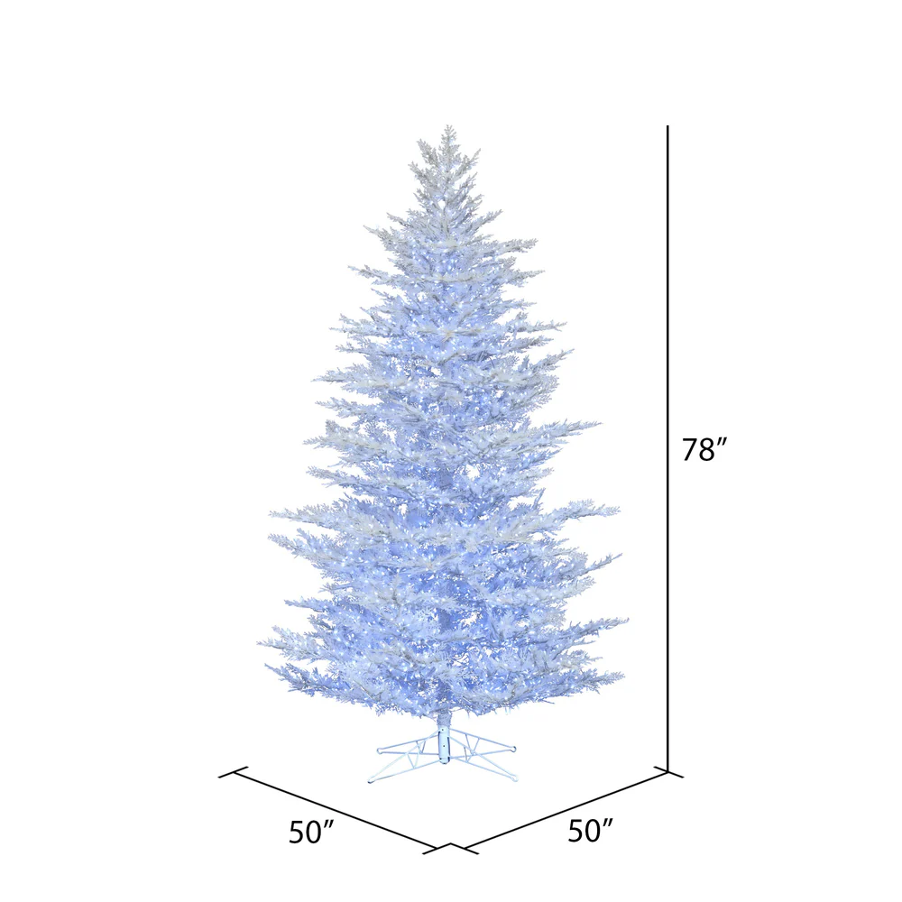 Vickerman 6.5' x 50" Flocked Cedar Pine Artificial Christmas Tree Low Voltage LED Pure White Wide Angle 3mm Lights