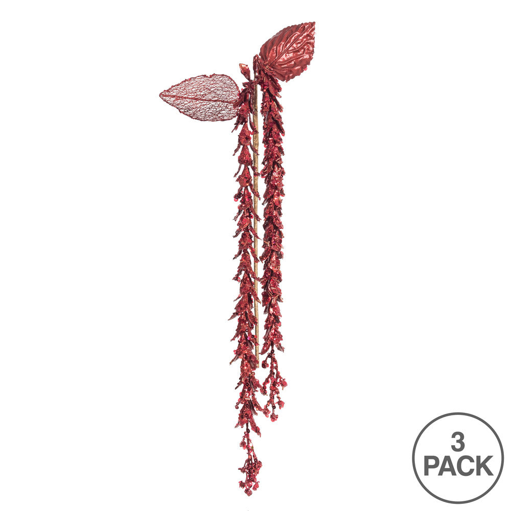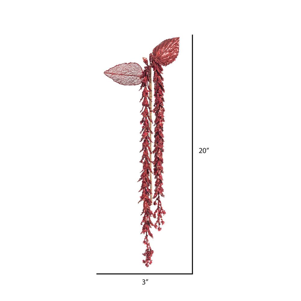 Vickerman 20" Red Pearl Hanging Lupin Artificial Christmas Spray. Includes 3 sprays per pack.