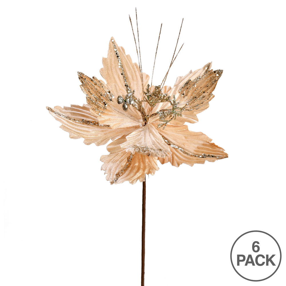 Vickerman 12" x 16" Champagne Poinsettia Artificial Christmas Spray. Includes 6 sprays per pack.