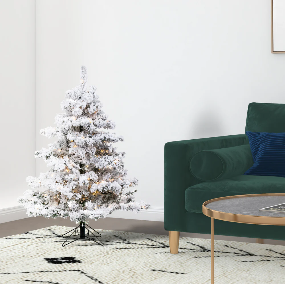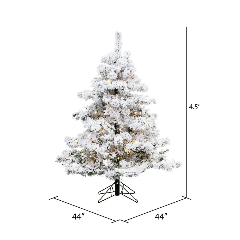 Vickerman 4.5' Flocked Alaskan Pine Artificial Christmas Tree Pure White Single Mold LED lights