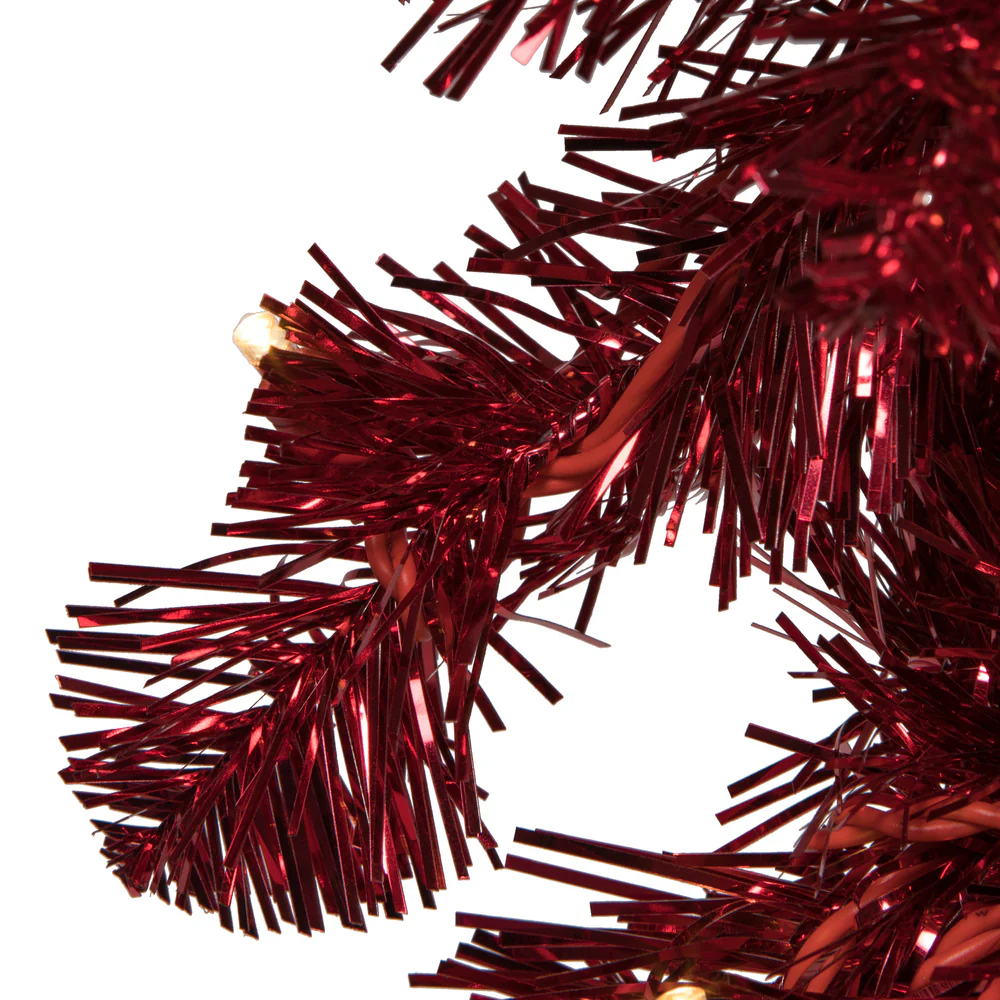 Vickerman 9' Tinsel Red Fir Slim Artificial Christmas Tree Red Dura-lit LED Lights