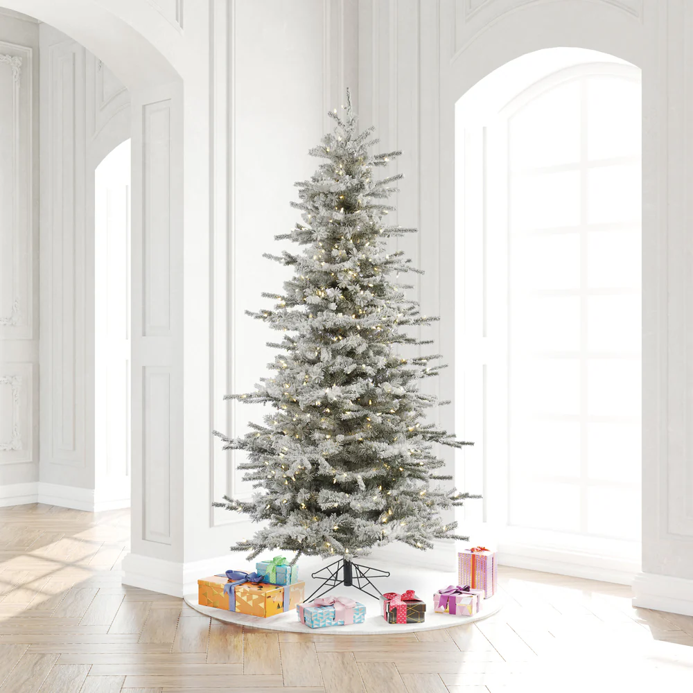 Vickerman 7.5' Flocked Sierra Fir Slim Artificial Christmas Tree Pure White Single Mold LED lights