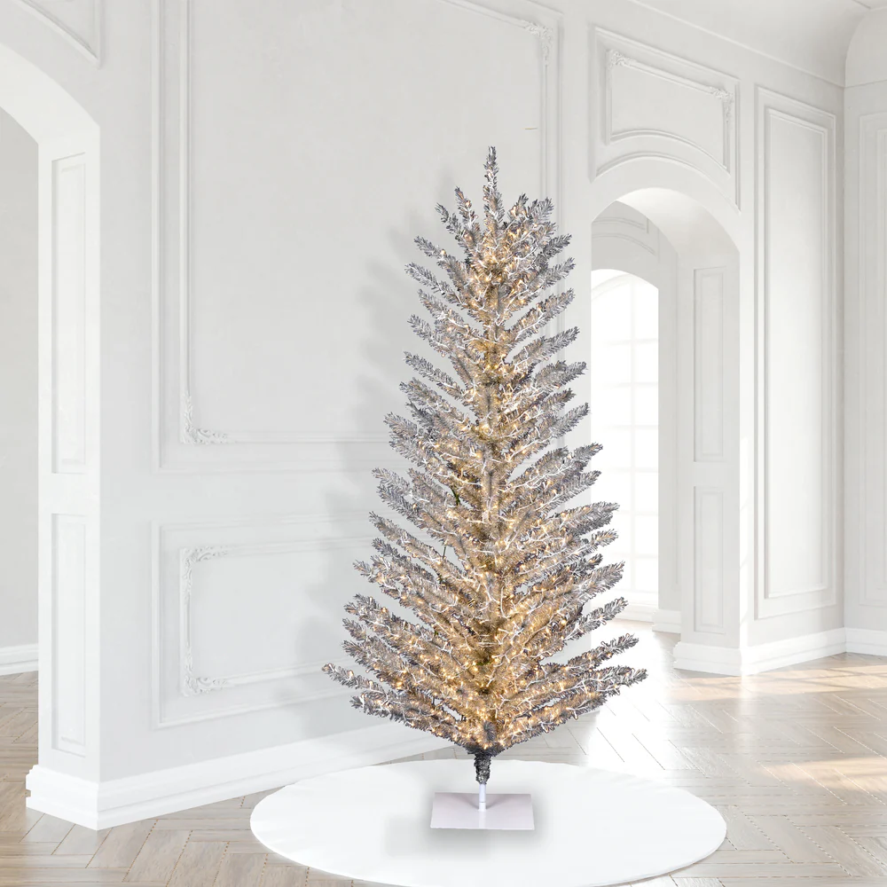 Vickerman 7.5' Flocked Lime Pencil Fir Artificial Christmas Tree Unlit
