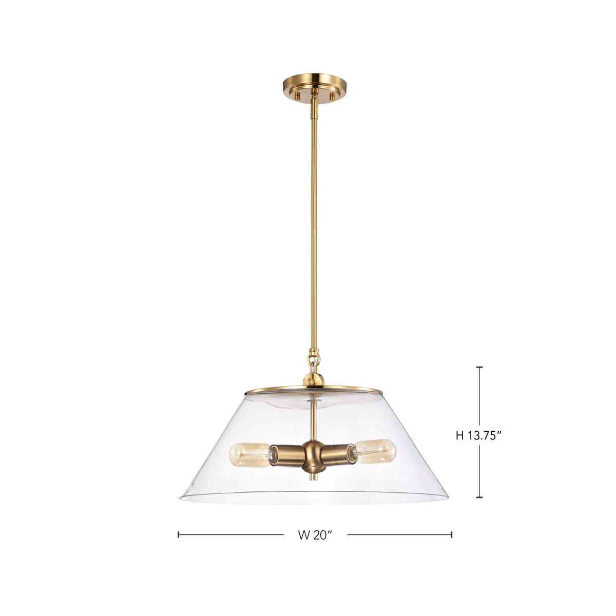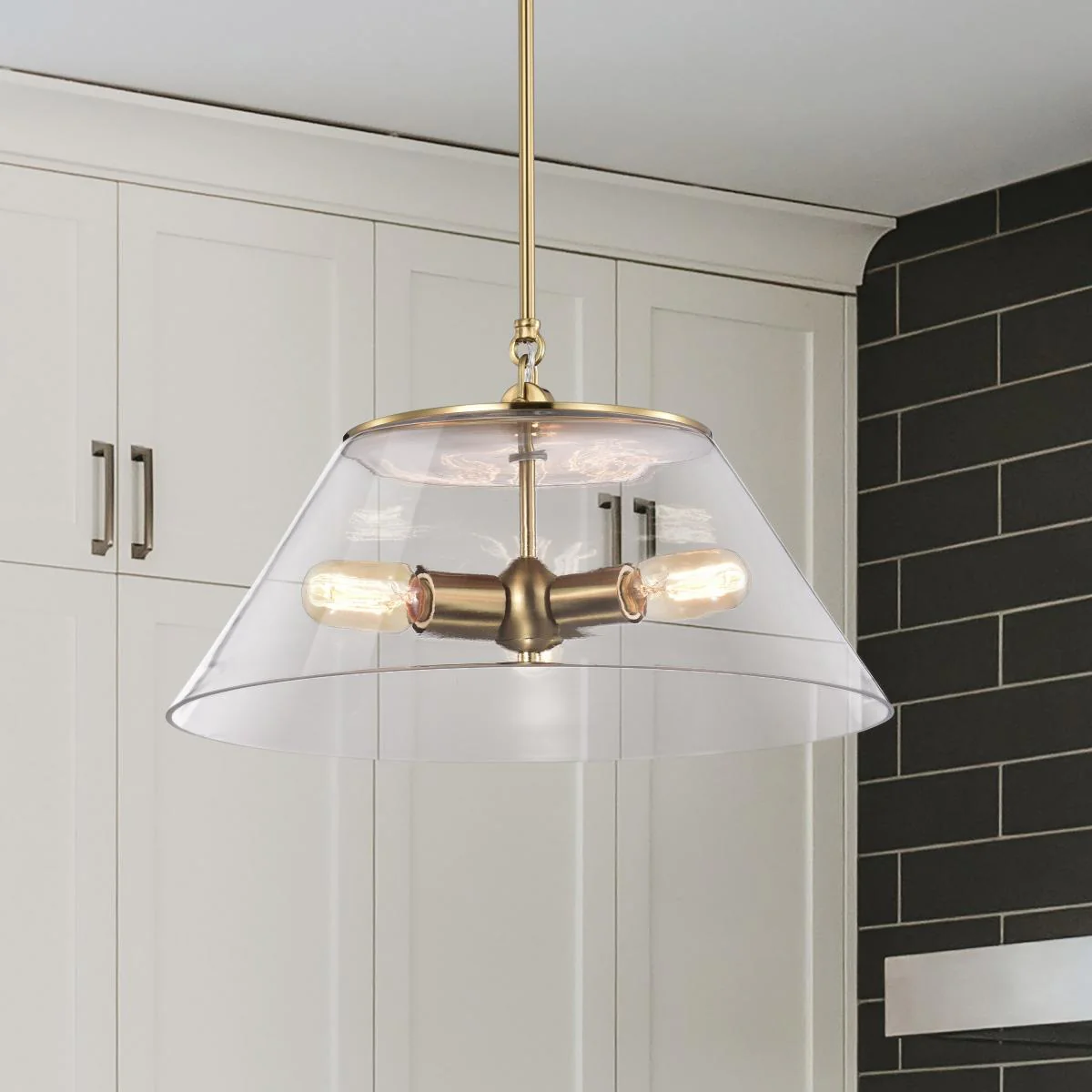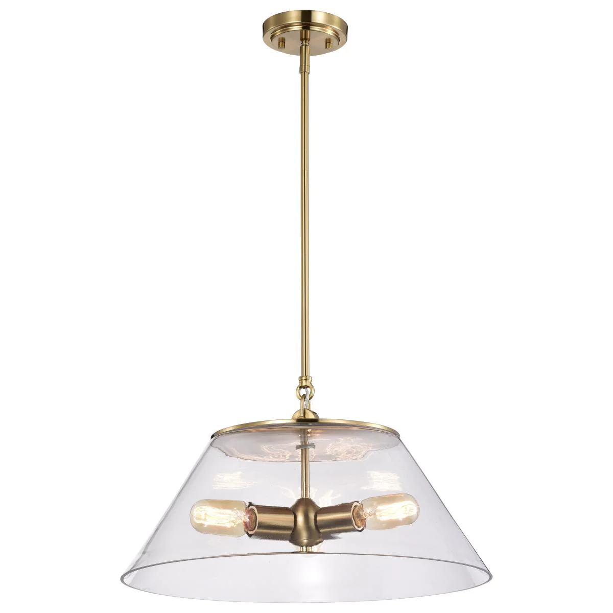 60-7416 DOVER 3 LIGHT LARGE PENDANT Dover; 3 Light; Large Pendant; Vintage Brass with Clear Glass