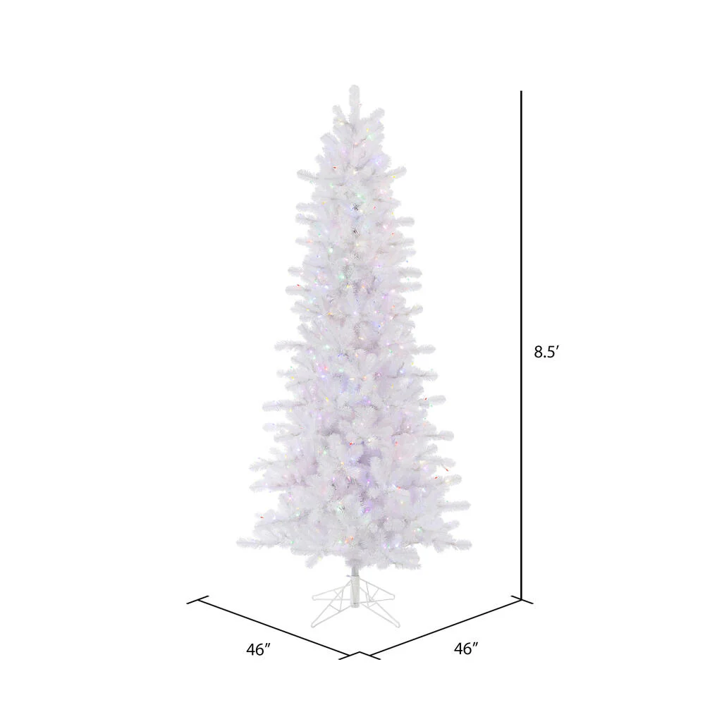 Vickerman 8.5' Crystal White Pine Slim Artificial Christmas Tree Multi-Colored LED Lights