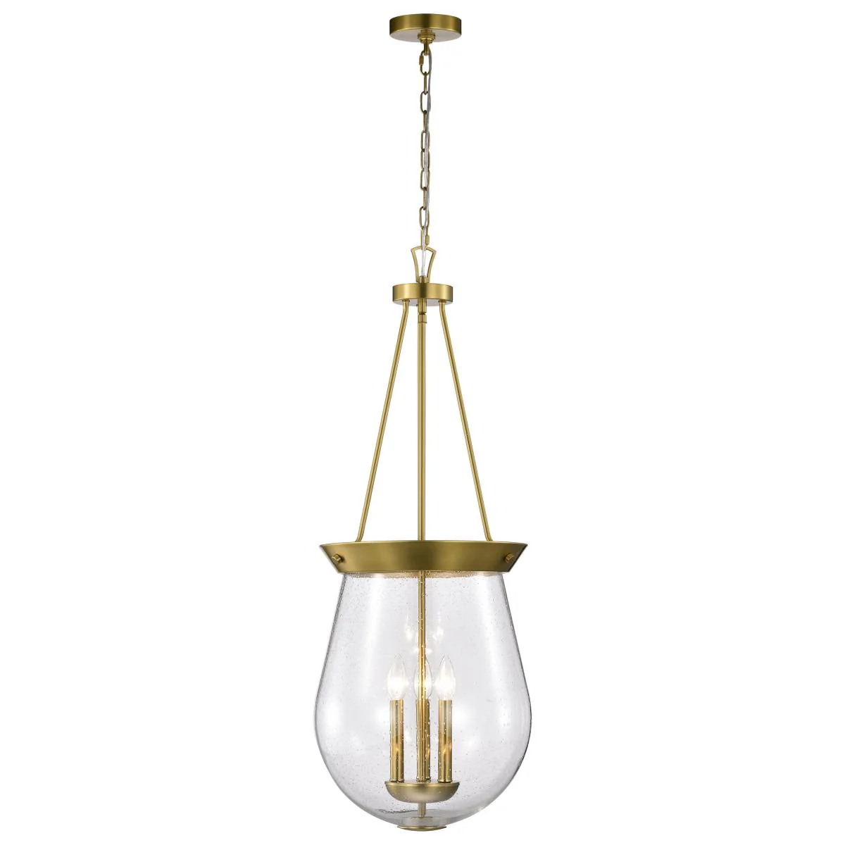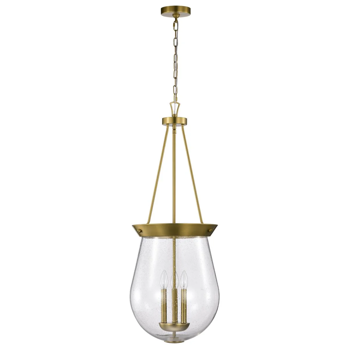 60-7804 BOLIVER 3 LIGHT 14"" PENDANT Boliver 3 Light Pendant; 14 Inches; Vintage Brass Finish; Clear Seeded Glass