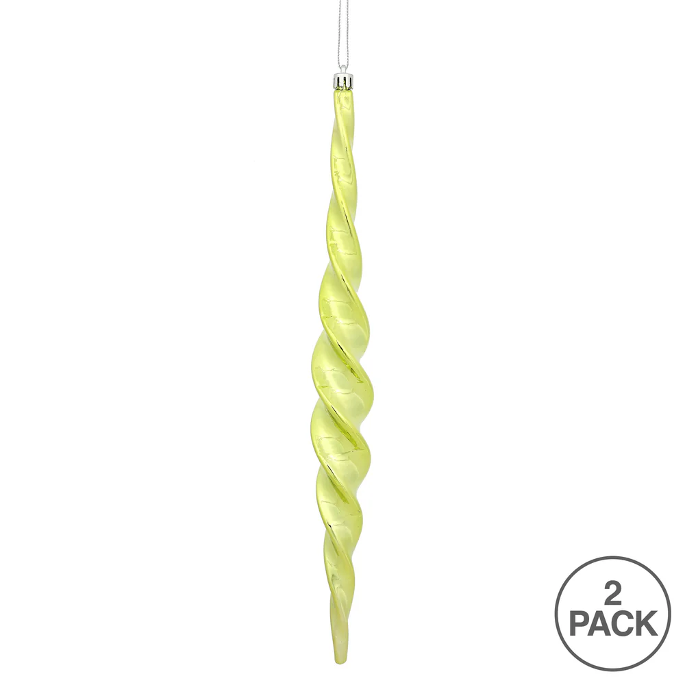 Vickerman 14.6" Lime Shiny Spiral Icicle Christmas Ornament Pack of 2
