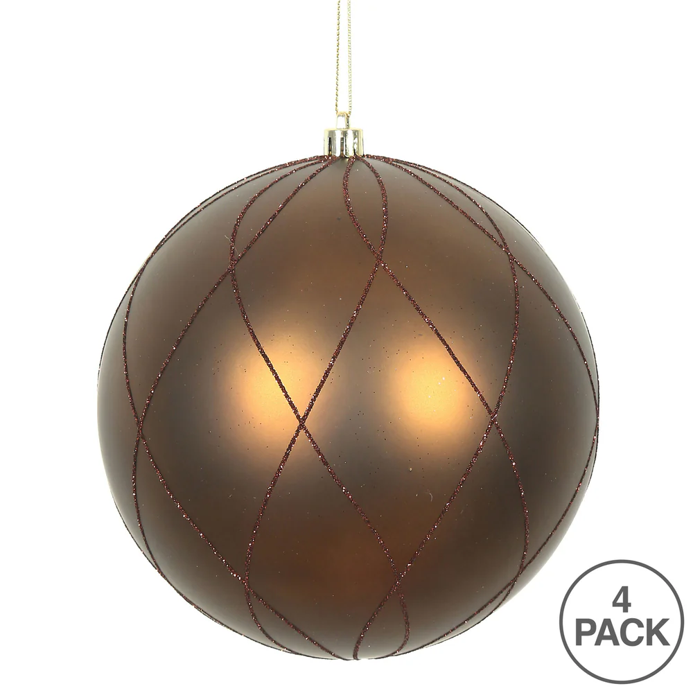 Vickerman 4" Mocha Matte and Glitter Swirl Ball Ornament 4 per Box