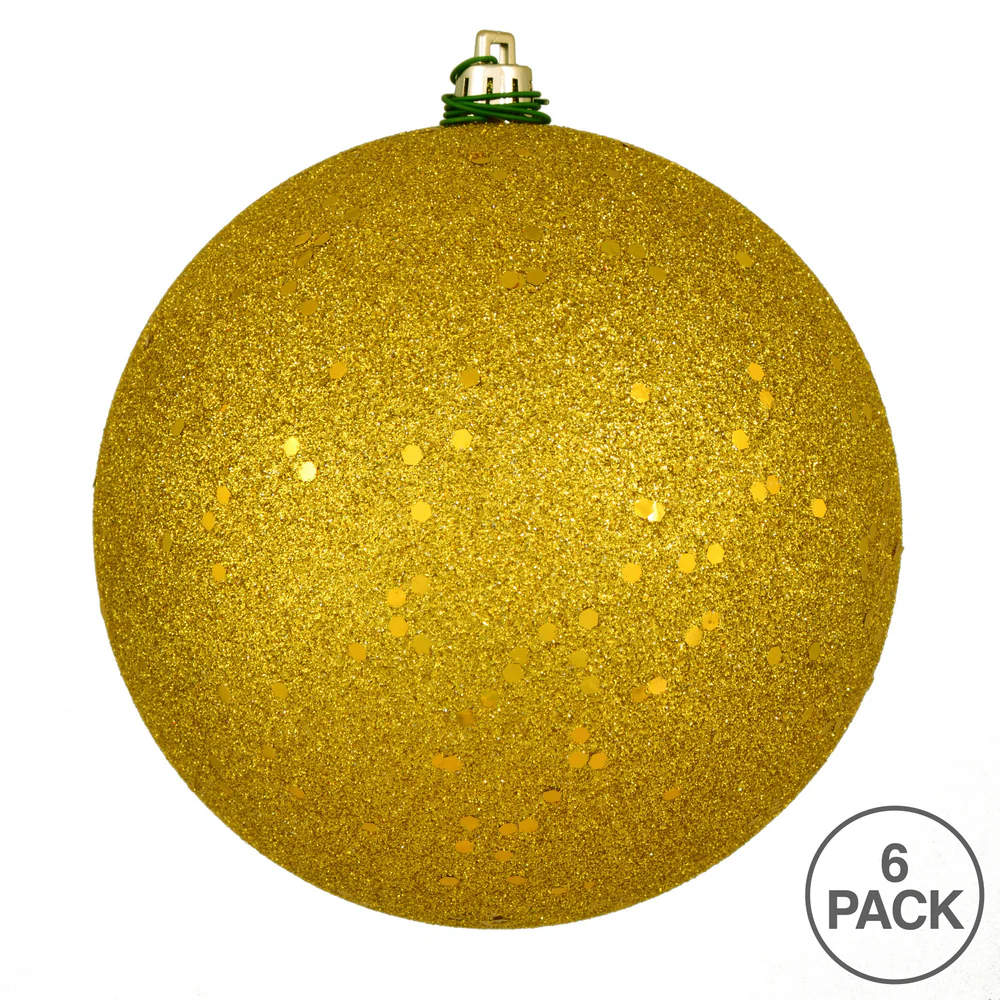 Vickerman 6" Yellow Glitter Ball Ornament 4 per Bag