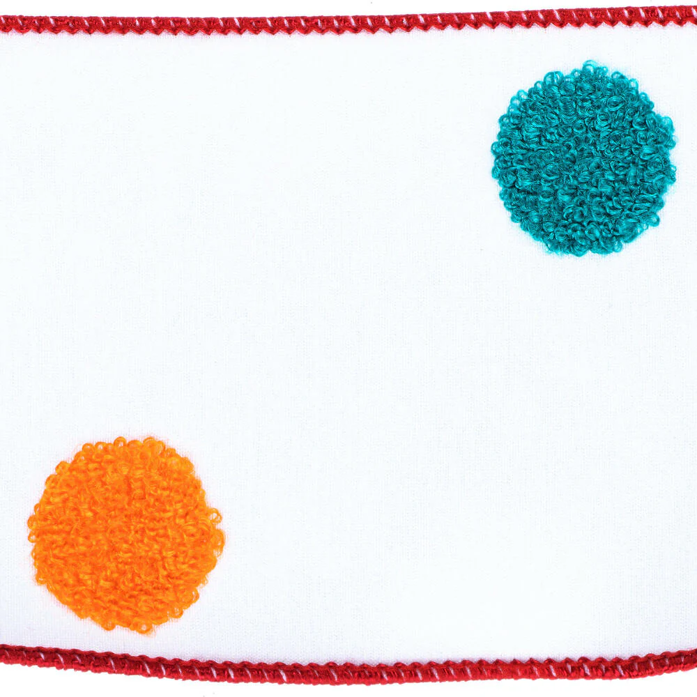 Vickerman 4" x 10 Yards White Fuzzy Dot Wired Edge Christmas Ribbon.