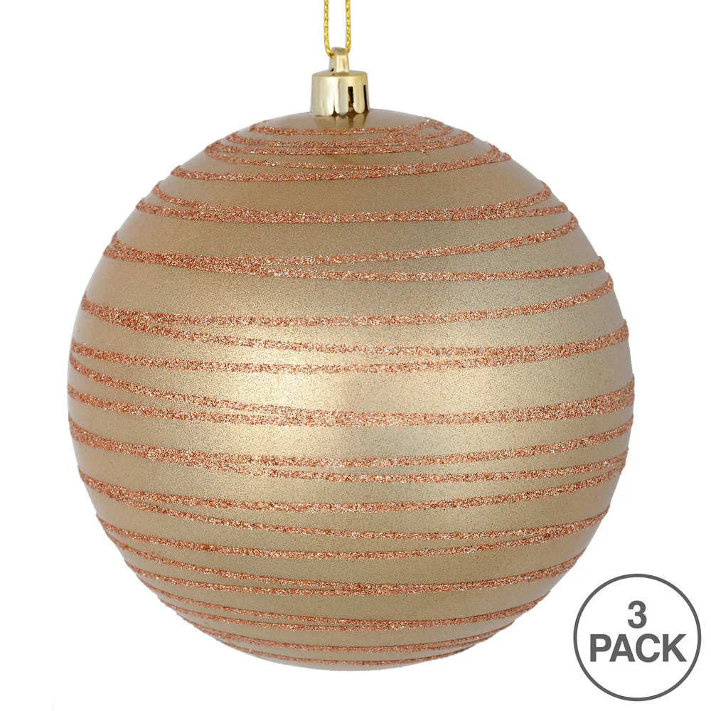 Vickerman 6" Café Latte Candy Finish Ball Ornament with Glitter Lines 3 per Bag