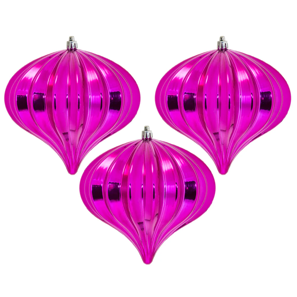 Vickerman 5.7" Fuchsia Shiny Onion Christmas Ornament UV Treated with Drilled and Wired Cap 3 per bag