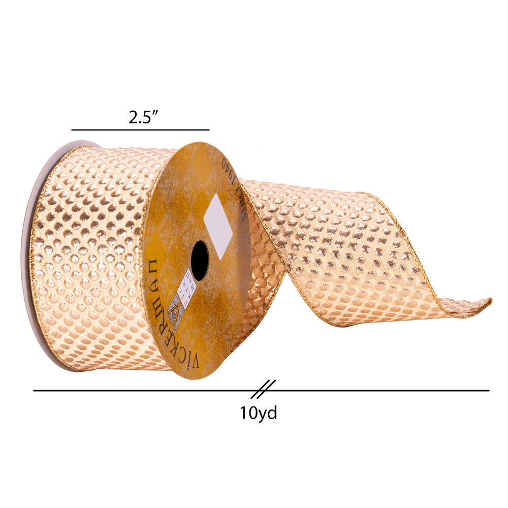 Vickerman 2.5" x 10 Yards Champagne with Champagne spots Ribbon