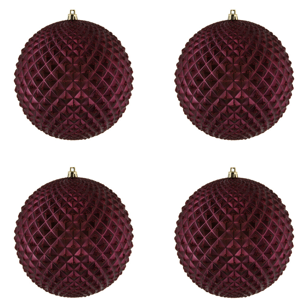 Vickerman 6" Wine Durian Glitter Ball Ornament 4 per Bag