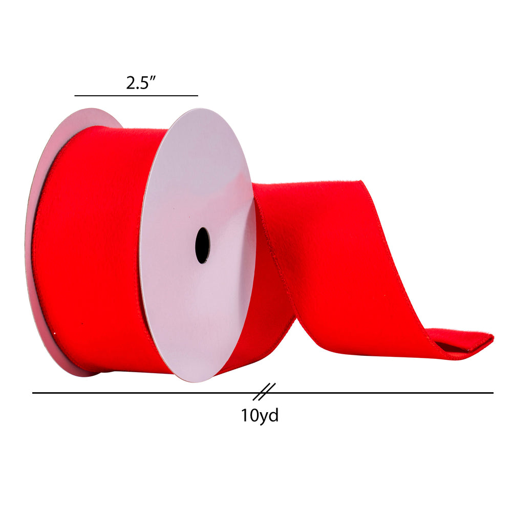 Vickerman 2.5" x 10 Yards Red Fur Felt Ribbon