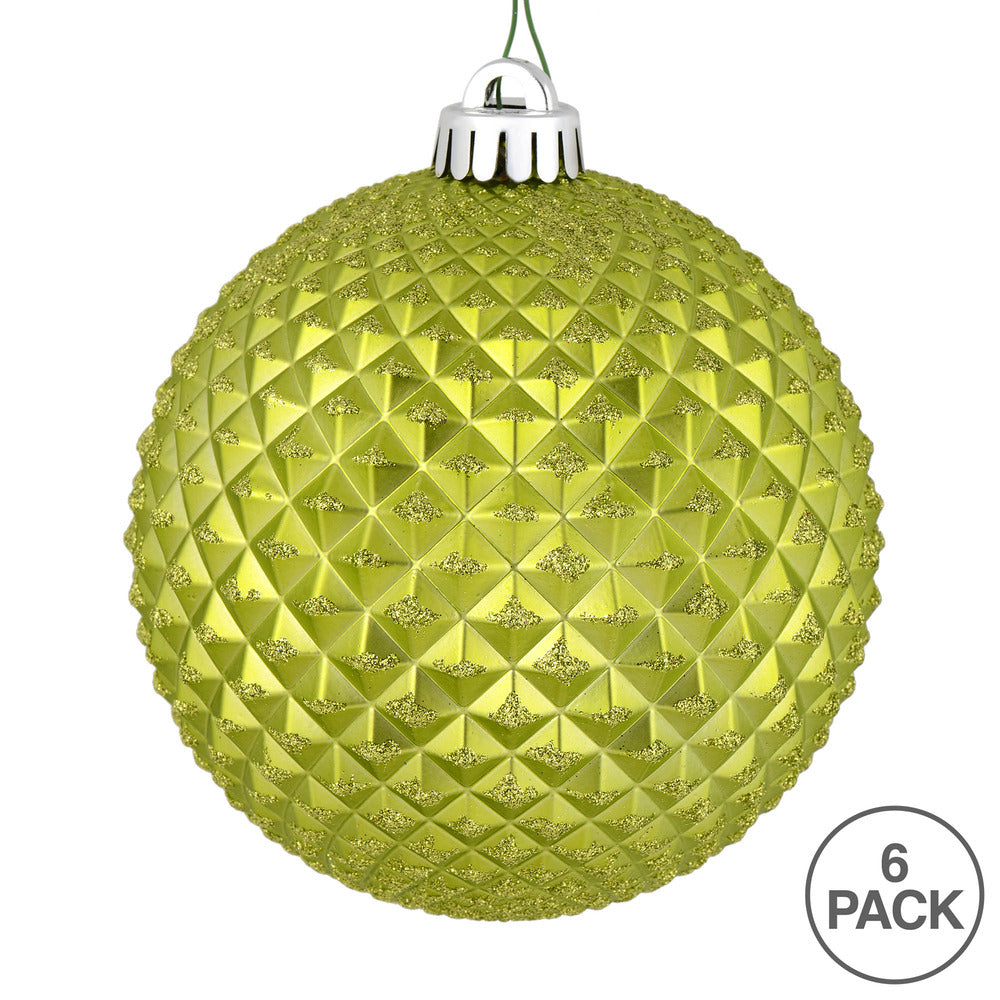 Vickerman 4" Lime Durian Glitter Ball Ornament 6 per Bag