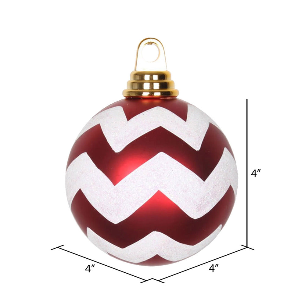 Vickerman 4" Red and White Matte Chevron Ball Christmas Ornament with Glitter Accents 4 per Box