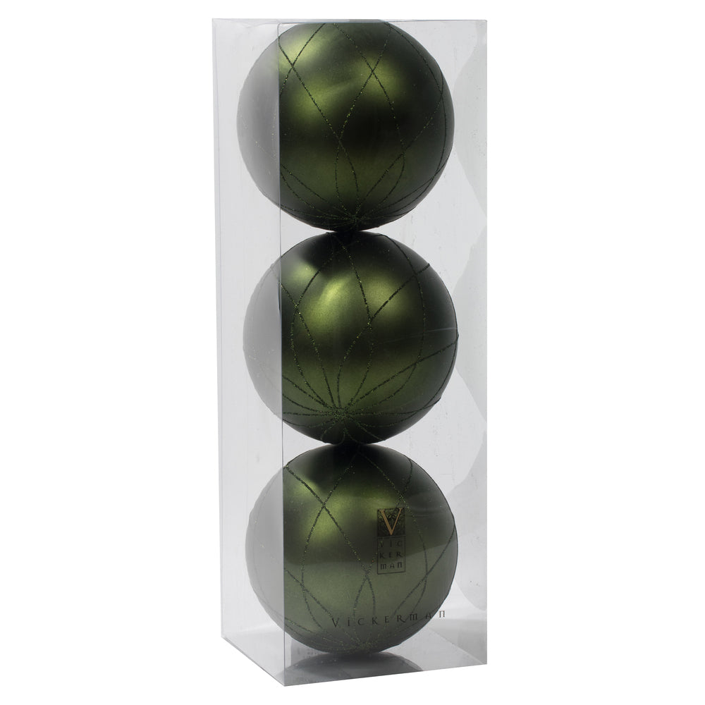 Vickerman 6" Moss Green Matte and Glitter Swirl Ball Ornament 3 per Box