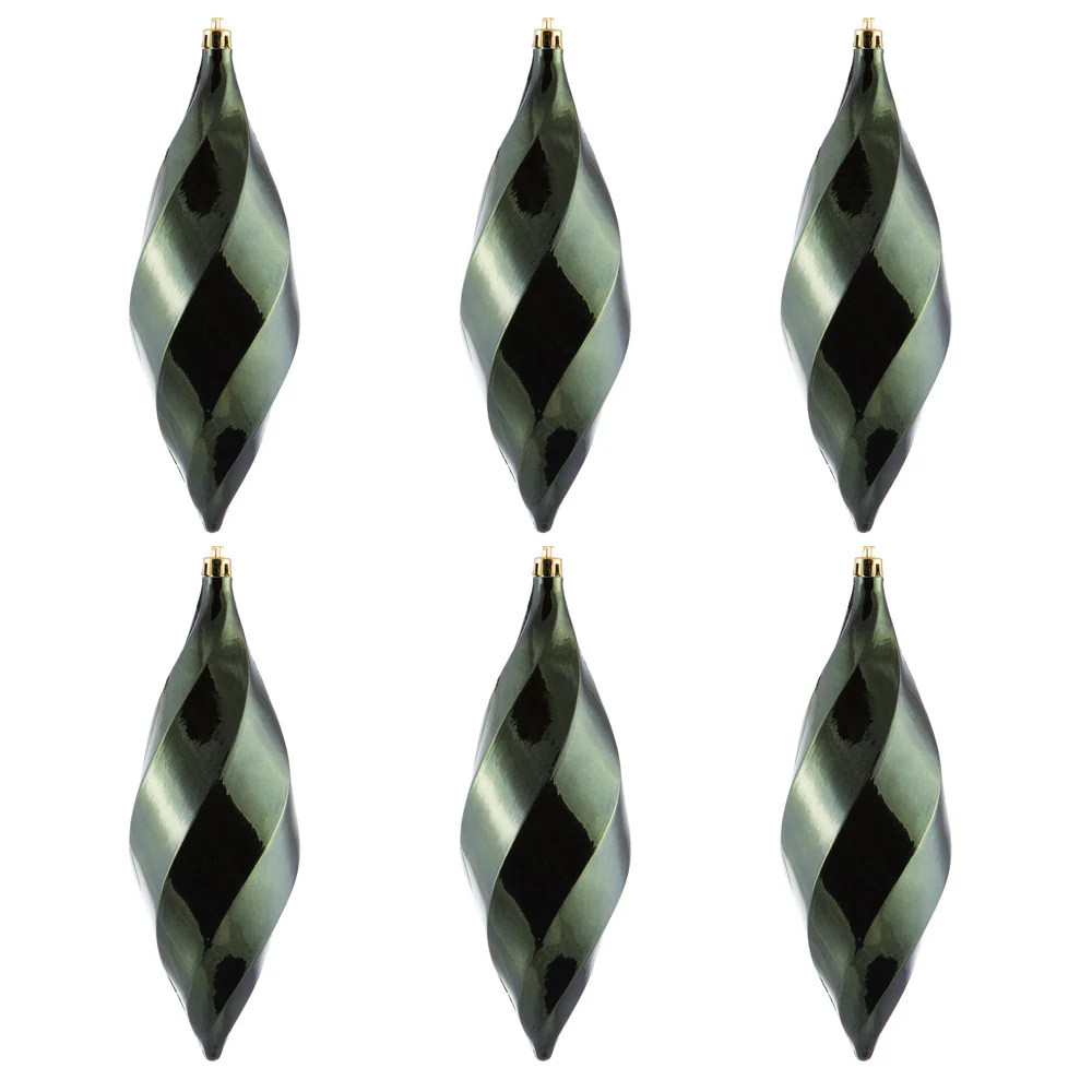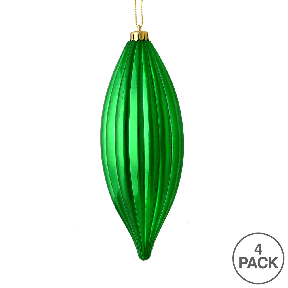 Vickerman 8" Green Shiny Line Finial Ornament Pack of 4