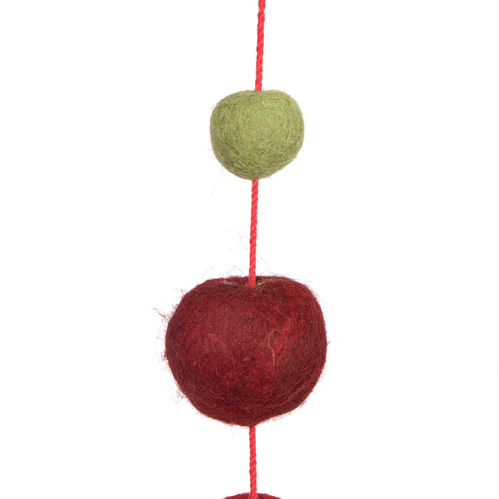 Vickerman 6' Red Green and Burgundy Wool Pom Pom Garland